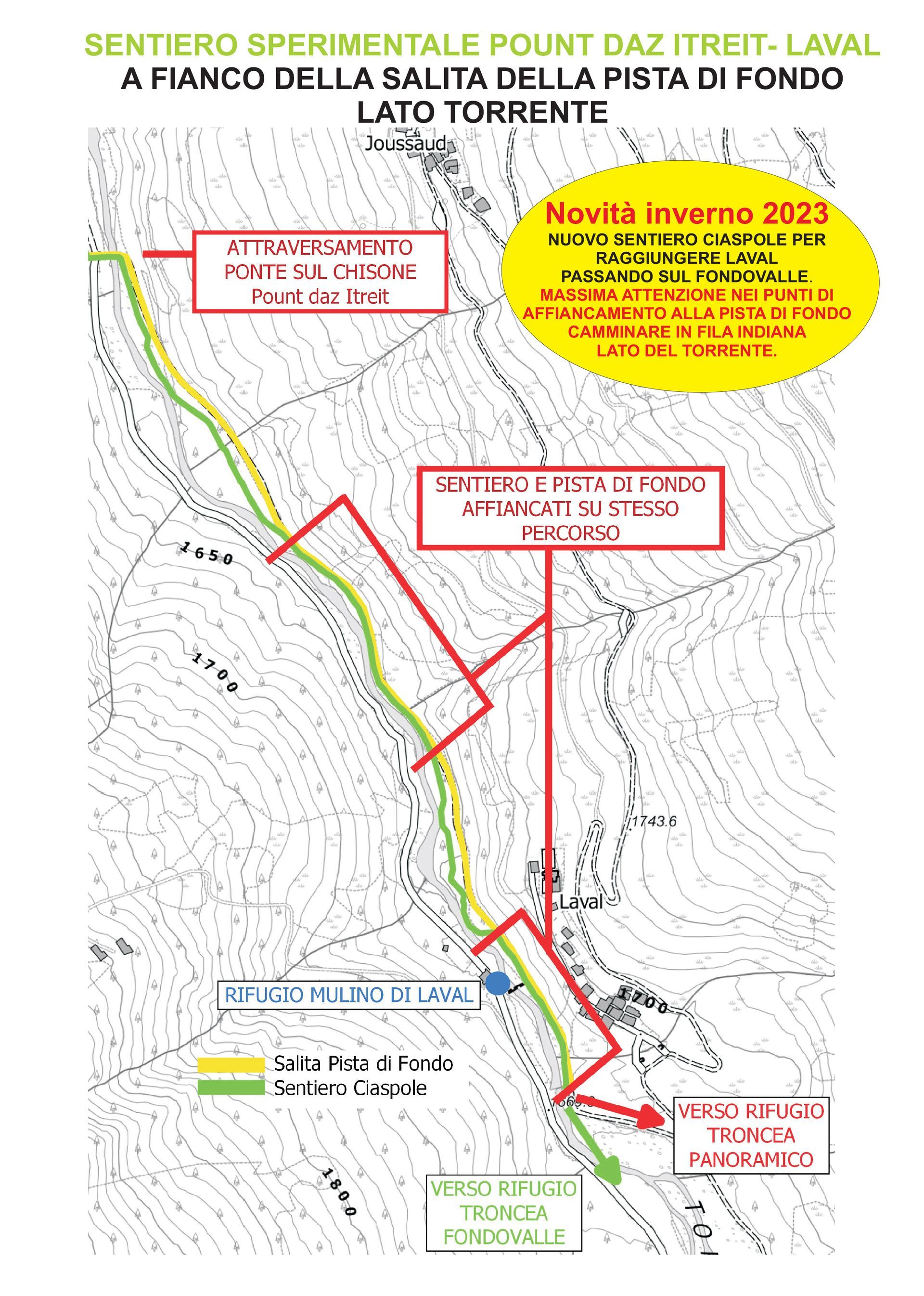 Durante l'inverno, affacciandosi sulla pista Olimpica di sci di fondo di Pragelato, è raggiungibile con gli sci oppure a piedi percorrendo un sentiero tracciato lungo Chisone sulla destra orografica dello stesso.