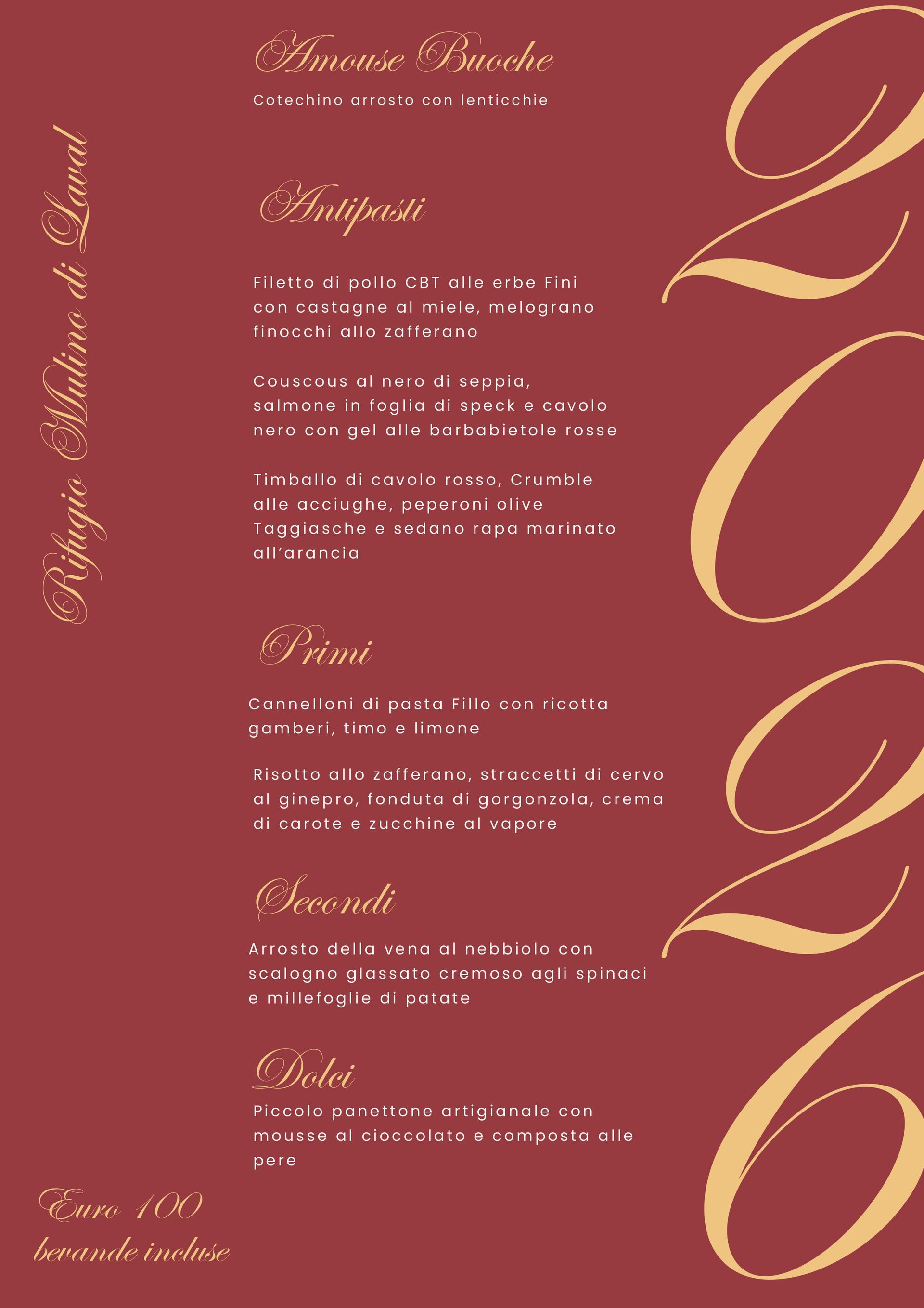 Il cenone si concluderà, come oramai da tradizione, con il piccolo panettone artigianale preparato con cura e passione di buon auspicio per un 2026 all'insegna della convivialità.